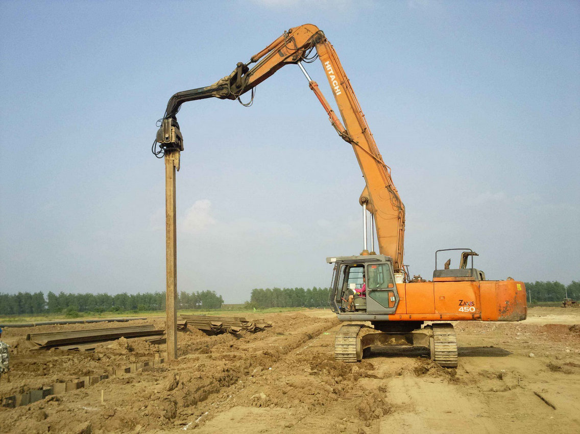 1. 施工便捷、速度快:拉森鋼板樁打樁機和挖掘機相似,對移動行走的場地要求低;外伸的機械臂連接小巧的夾具式振動錘,能盡量靠近基坑邊的障礙物進行板樁的施打,樁位布置靈活;拉森鋼板樁常見的單根長度6~18m,標準化咬合相扣,長短支護樁和不同型號的鋼板樁組合均很方便;拉森鋼板樁的施打工藝簡單,施工速度快,插入地層即具有強度,成樁到基坑開挖施工工期很短,能大幅度節(jié)省工期。